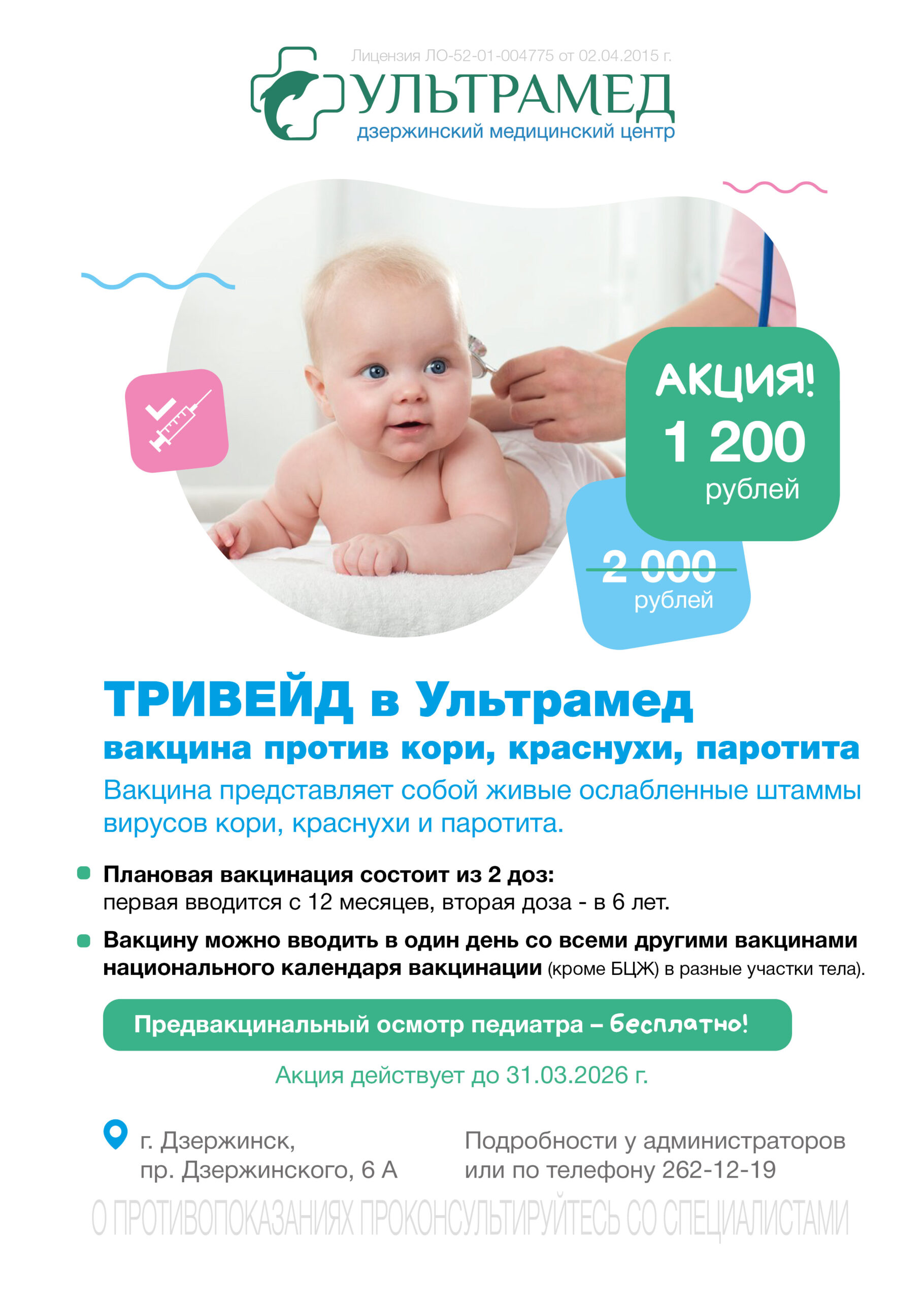 Вакцина против кори, краснухи, паротита Тривейд 1200 руб. вместо 2000 руб. до 31.03.2026 Запись по тел: (831) 262-12-19